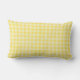 Uma girafa bonita a espreitar com margarida na boca, na grama verde e no padrão de gingham amarelo e branco.