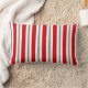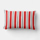 Travesseiro lombar em um padrão largo de faixas em vermelho-batom profundo, alternando com faixas estreitas em tons de cinza, sobre fundo branco