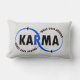 Karma - O que acontece volta ao Travesseiro (v1). O design artístico exibe a palavra "KARMA" em dois círculos sem fim com "O QUE VAI POR AÍ" e "VOLTA POR AÍ" curvos para formar seções dos círculos. As duas cores podem ser alteradas para sua preferência desejada editando o design. Faz o presente perfeito para aqueles que acreditam em Karma e em tratar bem os outros. Obrigado pelo apoio e pela visita à minha loja - UniquelyDistinct. Sinta-se livre para transferir este design em outros produtos do Zazzle.