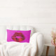 Esta simples e moderna almofada lombar ostenta um visual gráfico ousado de uma marca de batom vermelho gigante contra um brilho rosa brilhante, com estrelas minúsculas, ao fundo. Espalhe amor e alegria sempre que relaxar com esta almofada lombar colorida, elegante e moderna. Este é um ótimo presente para o Dia dos Namorados, aniversários, aniversários de casamento, noivados ou para um presente de "Eu te amo" a qualquer momento. Envie isto para alguém especial!