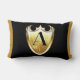 Este travesseiro lombar exibe a letra A maiúscula de um ouro elegante colorido com uma fonte única sobre o painel frontal e traseiro com tecido macio e sem rugas tem um invólucro zíper oculto, incluindo a inserção de preenchimento sintético. Todos os travesseiros são feitos de 100% de poliéster com sublimação dupla de alta qualidade.