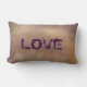 Inspirado pelo outono, está o impressão neste travesseiro de decoração doméstico com a palavra LOVE impresso no lado frontal em roxo, que faz um sotaque perfeito de decor doméstico. Design pelo Emporium de Jenn.