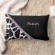 Um travesseiro lombar do impressão preto e branco bonito do girafa com uma listra diagonal roxa da lavanda feminino. Personalize este design animal bonito do impressão adicionando seu nome. Personalize o roxo da lavanda no verso com sua própria cor feita sob encomenda.