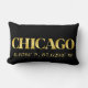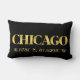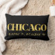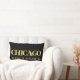 Design de travesseiro de sotaque lombar Lux apresenta as coordenadas de latitude e longitude da cidade de Chicago em fontes douradas sobre fundo preto