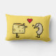 Travesseiro bonito com macarrão e queijo apaixonado, e um grande coração vermelho acima deles. Excelente para amantes de macaco e queijo!
