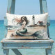 Almofada Lombar Mermaid Lighthouse Coastal Watercolor Scene