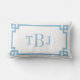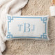 Um travesseiro decorativo moderno, giro, bonito, com uma borda chave grega geométrica e um monograma de pré-disquete. Dons admiráveis e únicos!