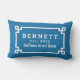 design lombar na moda apresenta um design geométrico geométrico branco grego-chave e um monograma que pode ser personalizado com um sobrenome casado ou familiar, data estabelecida (pode ser o ano de casamento ou o ano em que o primeiro filho foi nascer). Personalize o fundo azul cobalto para coordenar com o seu decor externo.