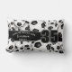 Este travesseiro lombar de equipe para um jogador de futebol apresenta bolas de futebol de tamanho variado em cada sentido em um fundo branco e um número de camisa proeminente em preto sobre o comprimento de um cheio faixa preta, sobre a qual você também pode personalizar o nome do atleta, o nome da equipe e o nome do mascote em branco - o reverso do travesseiro tem uma versão maior do padrão das bolas de futebol sobre um fundo preto - por katz_d_zynes - toalhas de mão com estilos semelhantes para jogadores de futebol podem ser encontradas em katz_d_zynes' Team name towels & water biberles >>> https://www.zazzle.com/collections/119856912745827517
