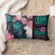 Composición más expresiva y abstracta: rostro femenino con contrastes bicolor, trazos fluidos, manchas y líneas que generan movimiento y profundidad. La flor central actúa como sello botánico de la colección, manteniendo la estética neon teal & pink para una línea uniforme en cojines, sudaderas y pósters.