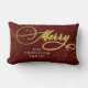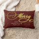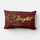 Saudações aos seus convidados, amigos e família com este Travesseiro de Natal da na moda e Holiday Season, moderna, com um bonito e falso guião escrito à mão, com a citação de "Feliz" de um lado e "Brilho" do outro, num fundo elegante de burgundy, com brilho dourado. Adicione facilmente a sua família ou o nome da empresa para personalizar o modelo de texto.