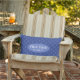 O perfeito travesseiro decorativo personalizado para o seu barco ou praia de férias apresenta um fundo padrão de âncoras azuis com texto central oval para adicionar o nome do barco.