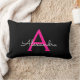 Almofada Lombar Nome do Monograma Girly de Script Quente Rosa