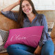 Almofadas Personalizadas com Nome em Caligrafia Elegante Branco Brilho Rosa apresentam um design moderno e tendência simples e elegante com o seu nome personalizado em tipografia de caligrafia manuscrita elegante sobre um fundo metálico rosa brilhante. Desenhado por ©Evco Studio www.zazzle.com/store/evcostudio