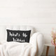 Travesseiro branco e preto com tipografia. O texto diz: "O que há lá dentro bruxas". Esta porta festiva e divertida é perfeita para outubro e Halloween. Mat é preto e a tipografia é uma escrita branca.