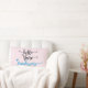 Um travesseiro de cor dupla, cor rosa e azul, com as palavras 'olá lá, bonito', escrito em uma tipografia incrível.