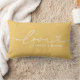 O design de travesseiro decorativo lombar personalizado moderno e na moda apresenta um design de tipografia simples e mínimo de "Amor" que inclui detalhes florescentes e cardíacos. Personalize o texto maiúsculo abaixo com um monograma para um casal ou família, uma citação ou outro texto preferido. As cores amarela e branca do ouro podem ser modificadas.