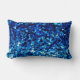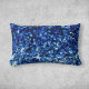 Este travesseiro lombar apresenta um padrão de traçado de tinta abstrato em diferentes tons de azul.