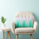 O travesseiro lombar apresenta um padrão fractal abstrato em um gradiente verde e roxo pastel colorido.