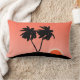 Travesseiro lombar em uma silhueta negra de palmeiras em uma ilha tropical, contra fundo de gradiente laranja sunset