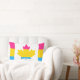 Lumbar Pillow with maple leaf from flag of Canada in the colors of pansexuality rainbow flag of pink, yellow and blue; pan pride lgbtqiap+ design,