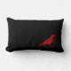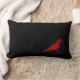 Pequeno corvo vermelho caminhando sobre um travesseiro preto retângulo estreito. Este travesseiro bonitinho adicionaria um excelente de interesse e de pizazz a qualquer sala.