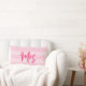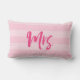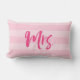 Travesseiro com "Sra." em um script de pincel cor-de-rosa contra um plano de fundo de listras rosa. Excelente para recém-casados ou aniversários.