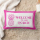 Bem-vindos a todos à vossa varanda com este travesseiro de varanda inspirado tropical que apresenta um abacaxi rosa-pré-apoila em branco com uma borda rosa correspondente na frente e rosa sólido no verso. Personalize com sua escolha de nome ou texto especial.