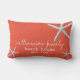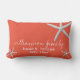Personalize este travesseiro decorativo da casa de praia com três estrelas-do-mar costeiras num fundo moderno de coral escuro, com o seu próprio sobrenome/nome de família em elegante escrita manuscrita, e o ano em que a família, a casa ou a casa foram estabelecidas. Perfeito para a nova casa, como presente de casamento, presente para um amigo, ou para sua casa de praia, casa de férias ou casa de praia. As cores de fonte e de fundo podem ser alteradas clicando em "Clique aqui para personalizar mais" na caixa de diálogo "Personalizar esta modelo". Entre em contato comigo se você quiser mais personalização com seus travesseiros! Fotografia do peixe-estrela e design por T.K. Todos os direitos reservados.