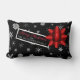 Este Travesseiro Lumbar bonito parece um presente de Natal embrulhado festivo! Ele apresenta as cores do Natal em moda preto, vermelho e branco. Flocos de neve brancos a cair em um fundo preto simulam o papel embrulhador e ele é tocado com um arco vermelho bonito, realista e com forma de estrela vermelha e uma etiqueta de Natal que pode ser facilmente personalizada. Este travesseiro festivo será o complemento perfeito para a sua casa neste feriado.