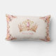 Princesa Lumbar travesseiro adornada com uma coroa rosa e ouro, flores delicadas e adoráveis princesas em vestidos pastéis. O nome, rosas e coroa no verso. Personalize facilmente o texto. - Kate Eden Art