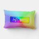 Um travesseiro com cores arco-íris para a comunidade LGBT com a mensagem "Espaço seguro" em frente e atrás. Altere o texto para um nome ou iniciais, se desejar.
