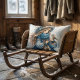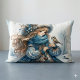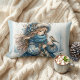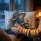 Almofada Lombar Rapariga de inverno com pássaro na Casaco azul