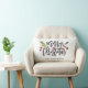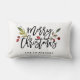 Moderno travesseiro de guião de Feliz Natal com bagas vermelhas e folhas botânicas verdes.
