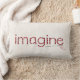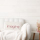 IMAGINE em texto inspiracional vermelho costura com agulha e fio sobre fundo texturizado claro