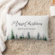 Travesseiro lombar decorativo personalizado para a temporada de festas com pinheiros aquosos design com nome pessoal.