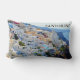 travesseiro decorativo lombar de 13" x 21" com uma imagem da ilha grega de Santorini, classicamente Thera e oficialmente Thira. Brown de volta.