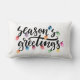 Sessões Saudações Luzes de Natal Branco ou Travesseiro decorativo lombar de cor personalizada. Decorre sua casa no Natal e dê as boas-vindas aos convidados com as VANTAGENS da SEASON neste travesseiro decorativo com a tipografia moderna do roteiro de caligrafia, acentuada com as luzes coloridas brilhantes de natal na sua escolha de texto, título gráfico e cor de fundo (mostrada a preto no branco). ASSISTÊNCIA: para obter ajuda sobre a modificação do design, entre em contato com o designer ANTES DE ENCOMENDAR, por meio da guia MENSAGEM de bate-papo Zazzle abaixo, ou envie um e-mail para makeitaboutyoustore@gmail.com.
