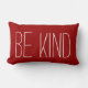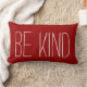 O lembrete perfeito para todos! Seja gentil, em texto branco sobre o travesseiro vermelho do Crimson. A parte de trás do travesseiro tem um texto pequeno que diz: Num mundo onde você pode ser qualquer coisa.... Personalize todo o texto, se desejar.