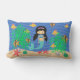 Este travesseiro lombar bonito caracteriza uma sereia com cabelo escuro nos rabos de cavalo que nada no oceano com seus amigos da criatura do mar. Alguns gráficos por AMBillustrations.