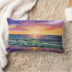 Uma vista de cheio em frente ao travesseiro decorativo de 13 por 21 polegadas com uma cópia da pintura de paisagem de Wave Verde de Joyce Jackson. A parte de trás inteira é verde-senso sólido. Personalizável.