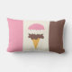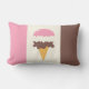 Cone de sorvete napolitana em sabores de morango, baunilha e chocolate. Destacado com faixas verticais napolitanas cor-de-rosa, creme e chocolate nas laterais deste travesseiro lombar personalizado. Excelente de adicionar um toque de doçura a uma sala de estar, quarto ou qualquer quarto. É um design super fofo para qualquer amante do sorvete!