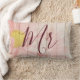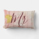 Um adorável Sr. e Sra. travesseiro com "Sr." escrito na frente, este travesseiro exibe um fundo floral cor-de-rosa. A parte de trás do travesseiro tem a data do sobrenome e do casamento. Veja a coleção floral cor-de-rosa para o resto dos travesseiros. Arte: moradia