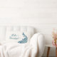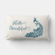 Um travesseiro com a imagem de um pavão de chá com penas de rico. Texto tipográfico diz "Olá Linda". Um estilo de deco de arte legal. Moderno e clássico