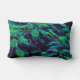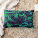 O padrão de tecido do HomeWare neste Travesseiro lombar foi criado de uma fotografia original de uma árvore pontiana real. Algumas folhas tropicais da árvore estão à luz do sol, em verdes amarelos brilhantes. Outros estão na sombra, em tons de azul do aqua ao fundo do mar, com realces roxos. O fundo é quase preto. O design tem uma textura geral do tecido.