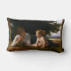 Tentação c1880 do pintor francês William Bouguereau (1825-1905); dos NeoClassic e Academic Periods, que criaram interpretações modernas de assuntos clássicos com base em temas mitológicos. Uma bela e adorável pintura de uma jovem senhora e de uma menina de cerca de 3 anos relaxando no chão, com a jovem deitada e o bebê sentado por um lago com lírios d'água nele, em um vasto terreno com várias árvores atrás deles.