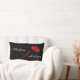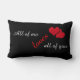 Um travesseiro decorativo preto com as palavras "Todos eu amo todos vocês" e um pouco de coração vermelho. Projetado por Robin D. Cox.