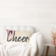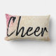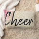 O travesseiro bonito e feminino apresenta um fundo falso de ouro e brilho cor-de-rosa com as palavras "Cheer" rastejadas em caracteres pretos e esbranquiçados