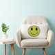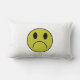 Um travesseiro com uma cara na parte dianteira e do frowney da cara em uma parte traseira sobre.