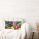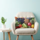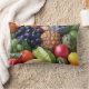 Fotografia de uma variedade de fruta colorida impressa nas bordas do travesseiro.